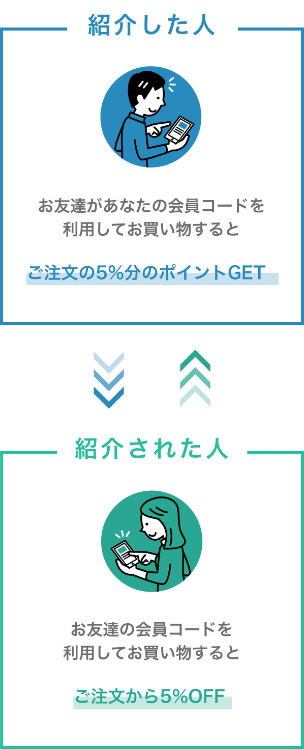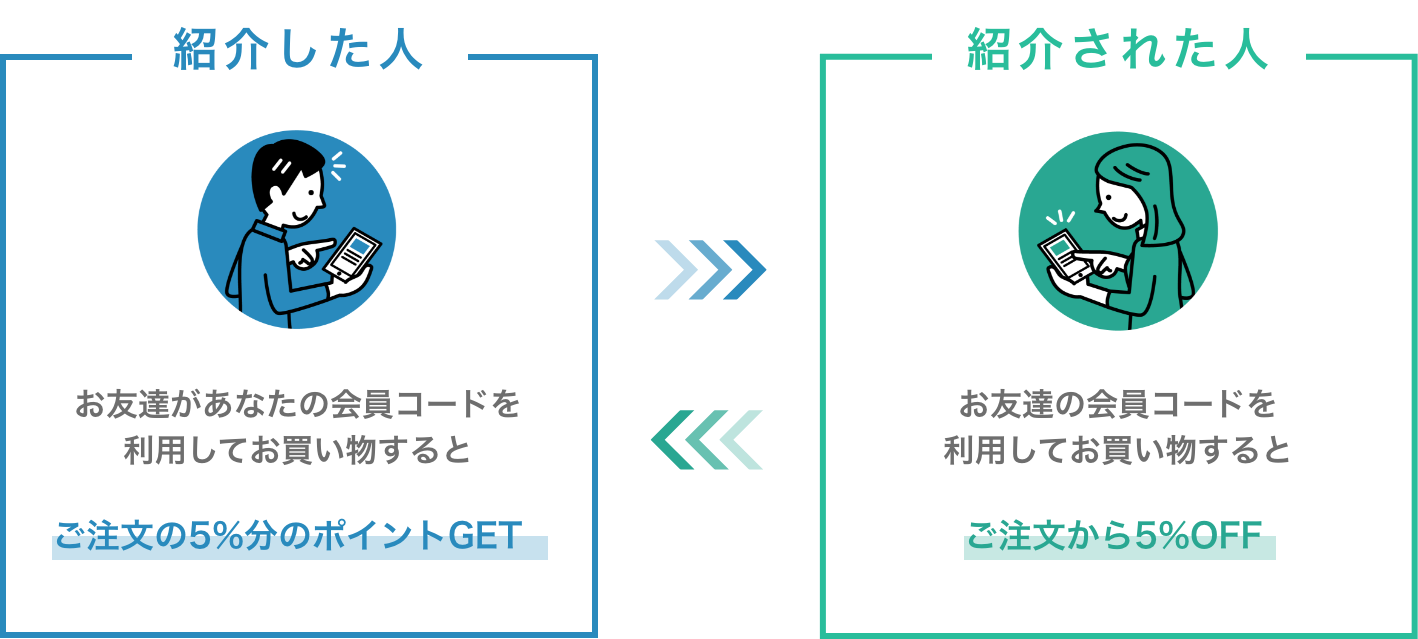 ④お友達が会員コードを利用してお買い物をするとご注文の5%分のポイントがもらえます。